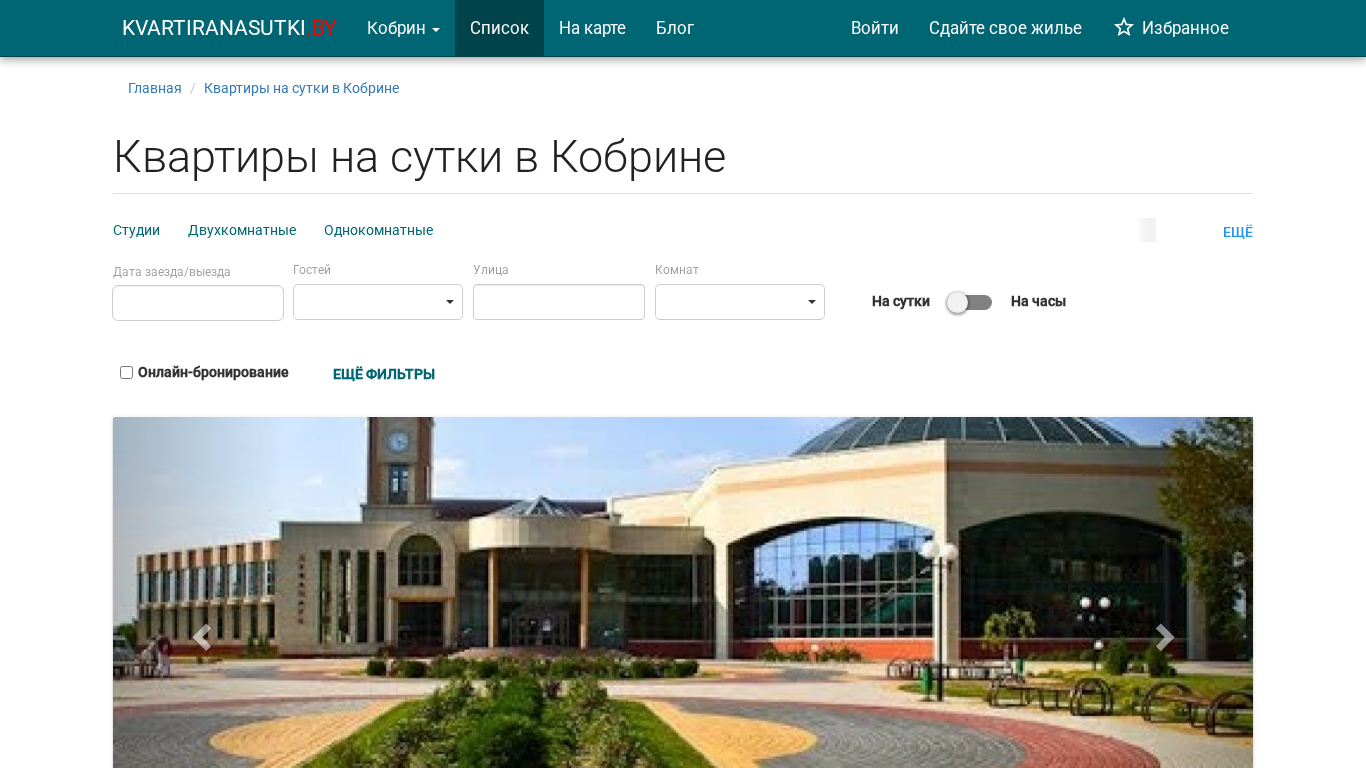 | SEO-описание | Квартиры на сутки в Кобрине без посредников! Посуточная аренда квартир в Беларуси. Цены от 19 $, поиск на карте, настоящие фото. |