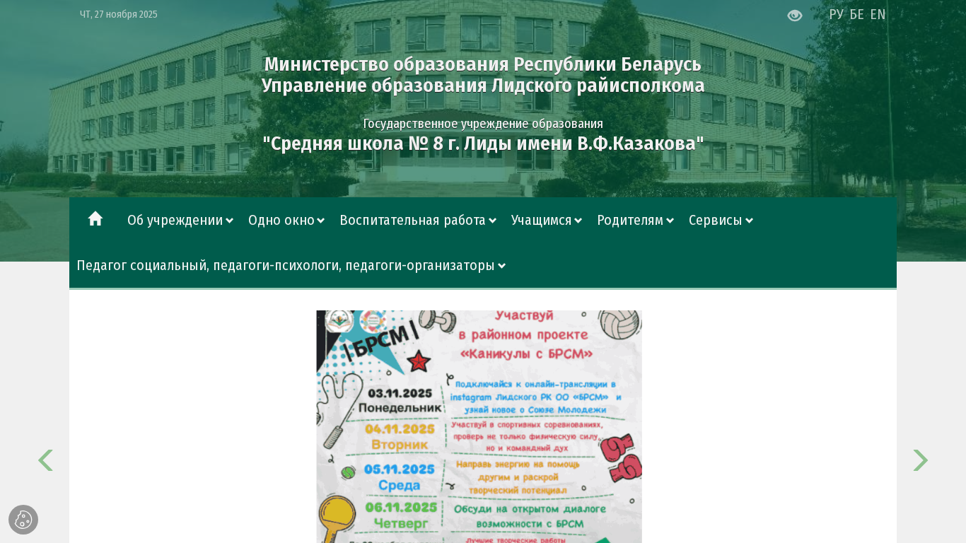 | Название / Заголовок | Средняя школа №8 г. Лиды имени В.Ф.Казакова |