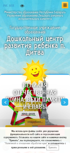 | AI-анализ | The web project "Дошкольный центр развития ребенка п. Дитва (Doshkolnyy tsentr razvitiya rebenka p. Ditva)" is a Belarusian educational institution based in the city of Lida. The main focus of the website is to provide information about the kindergarten, its history, achievements, and daily operations. The center offers various educational programs, including preschool education and extracurricular activities. Additionally, the website covers topics such as safety, healthy living, and community engagement. Users can find information on the kindergarten's administration, staff, and contact details. The site also features interactive elements, such as a map of available spots in the kindergarten and a FAQ section for parents. Overall, the "Дошкольный центр развития ребенка п. Дитва" website aims |