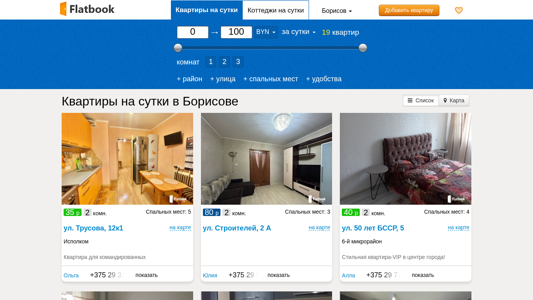 | Название / Заголовок | Квартиры на сутки в Борисове без посредников. Снять квартиру посуточно |
