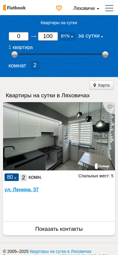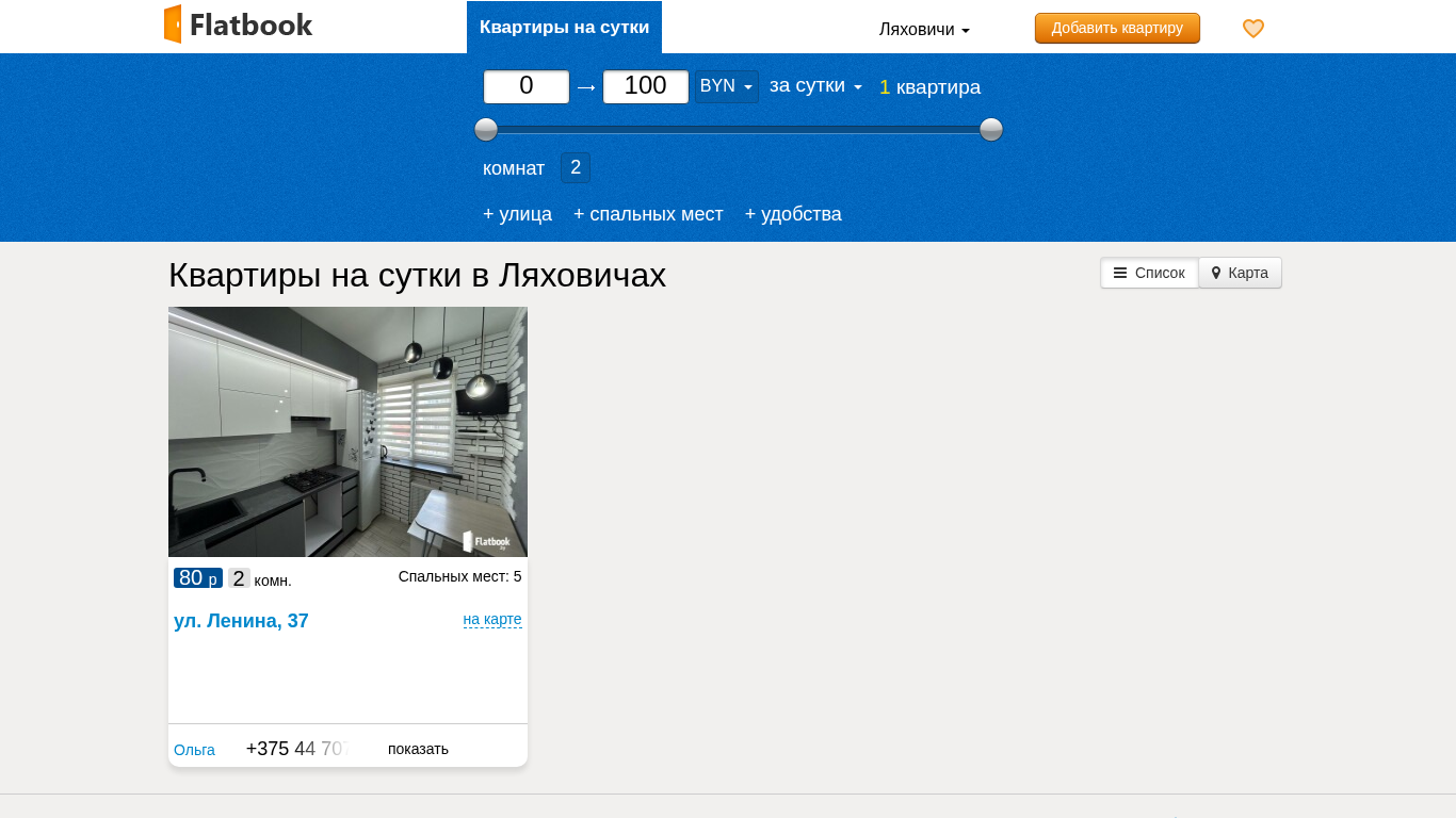 | Название / Заголовок | Квартиры на сутки в Ляховичах без посредников. Снять квартиру посуточно |