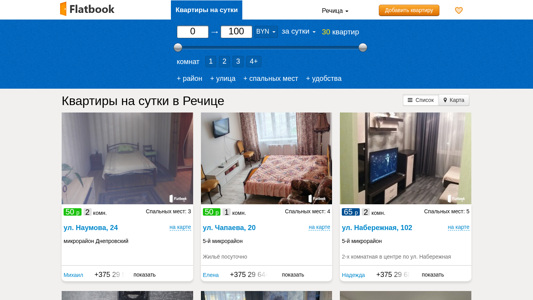 | Ключевые слова | квартира на сутки посуточно Речица аренда снять цены |