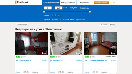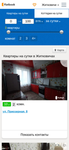 | Название / Заголовок | Квартиры на сутки в Житковичах без посредников. Снять квартиру посуточно |