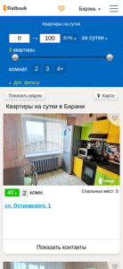 | Ключевые слова | квартира на сутки посуточно Барань аренда снять цены |