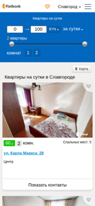 | Название / Заголовок | Квартиры на сутки в Славгороде без посредников. Снять квартиру посуточно |