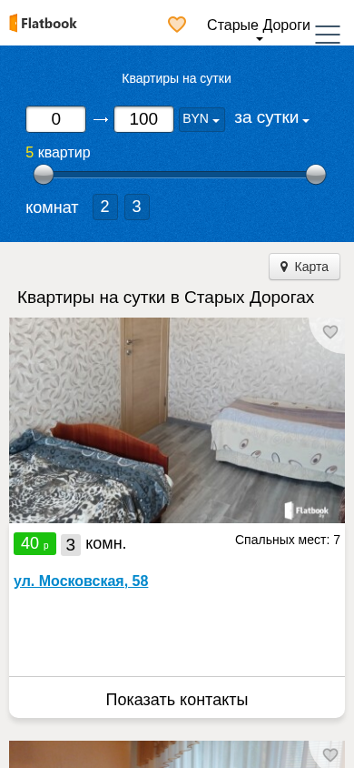 | Название / Заголовок | Квартиры на сутки в Старых Дорогах без посредников. Снять квартиру посуточно |