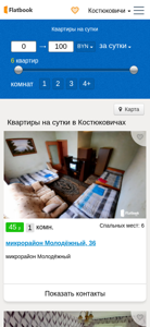 | Название / Заголовок | Квартиры на сутки в Костюковичах без посредников. Снять квартиру посуточно |