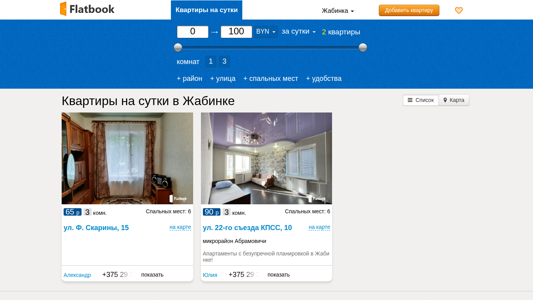 | Название / Заголовок | Квартиры на сутки в Жабинке без посредников. Снять квартиру посуточно |