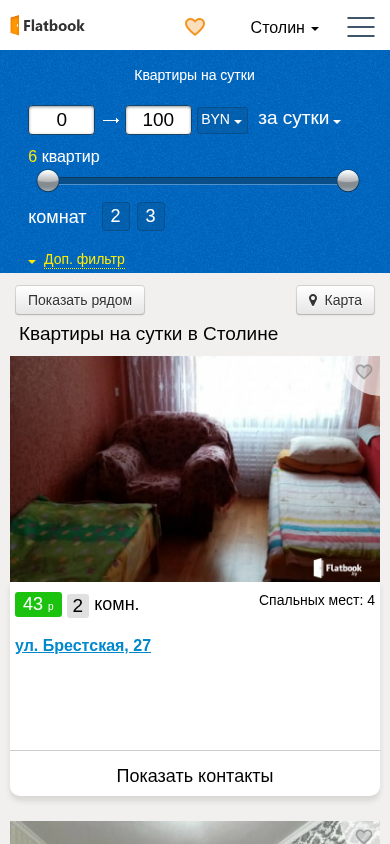 | Название / Заголовок | Квартиры на сутки в Столине без посредников. Снять квартиру посуточно |