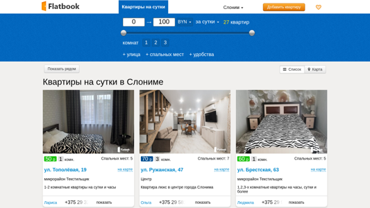 | Название / Заголовок | Квартиры на сутки в Слониме без посредников. Снять квартиру посуточно |
