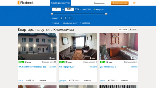 | Название / Заголовок | Квартиры на сутки в Климовичах без посредников. Снять квартиру посуточно |