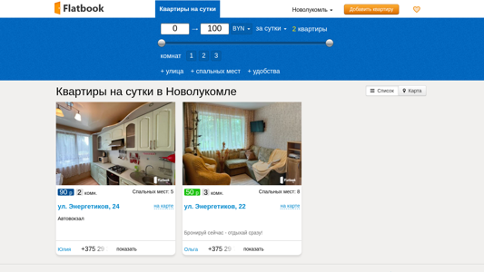 | Название / Заголовок | Квартиры на сутки в Новолукомле без посредников. Снять квартиру посуточно |