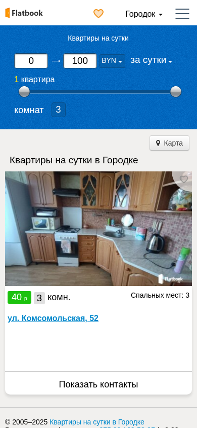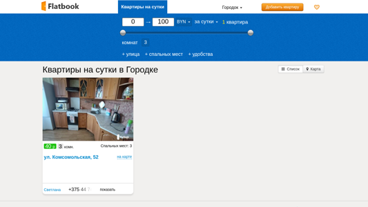 | Название / Заголовок | Квартиры на сутки в Городке без посредников. Снять квартиру посуточно |