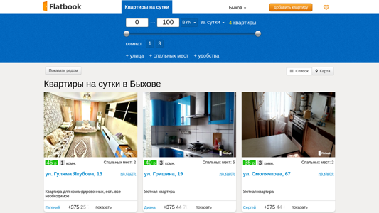 | Название / Заголовок | Квартиры на сутки в Быхове без посредников. Снять квартиру посуточно |