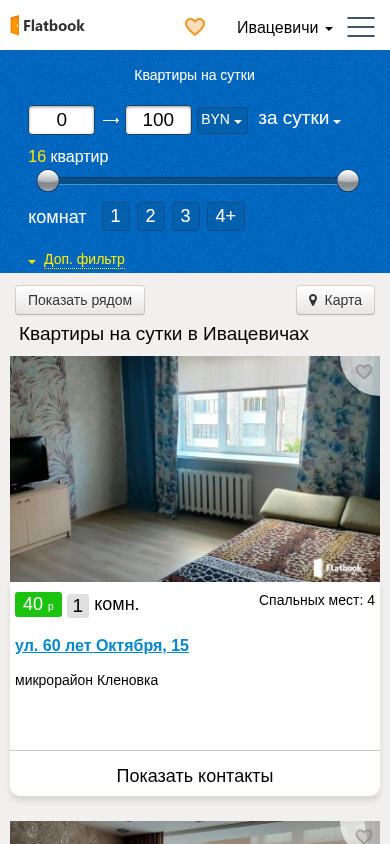 | Название / Заголовок | Квартиры на сутки в Ивацевичах без посредников. Снять квартиру посуточно |