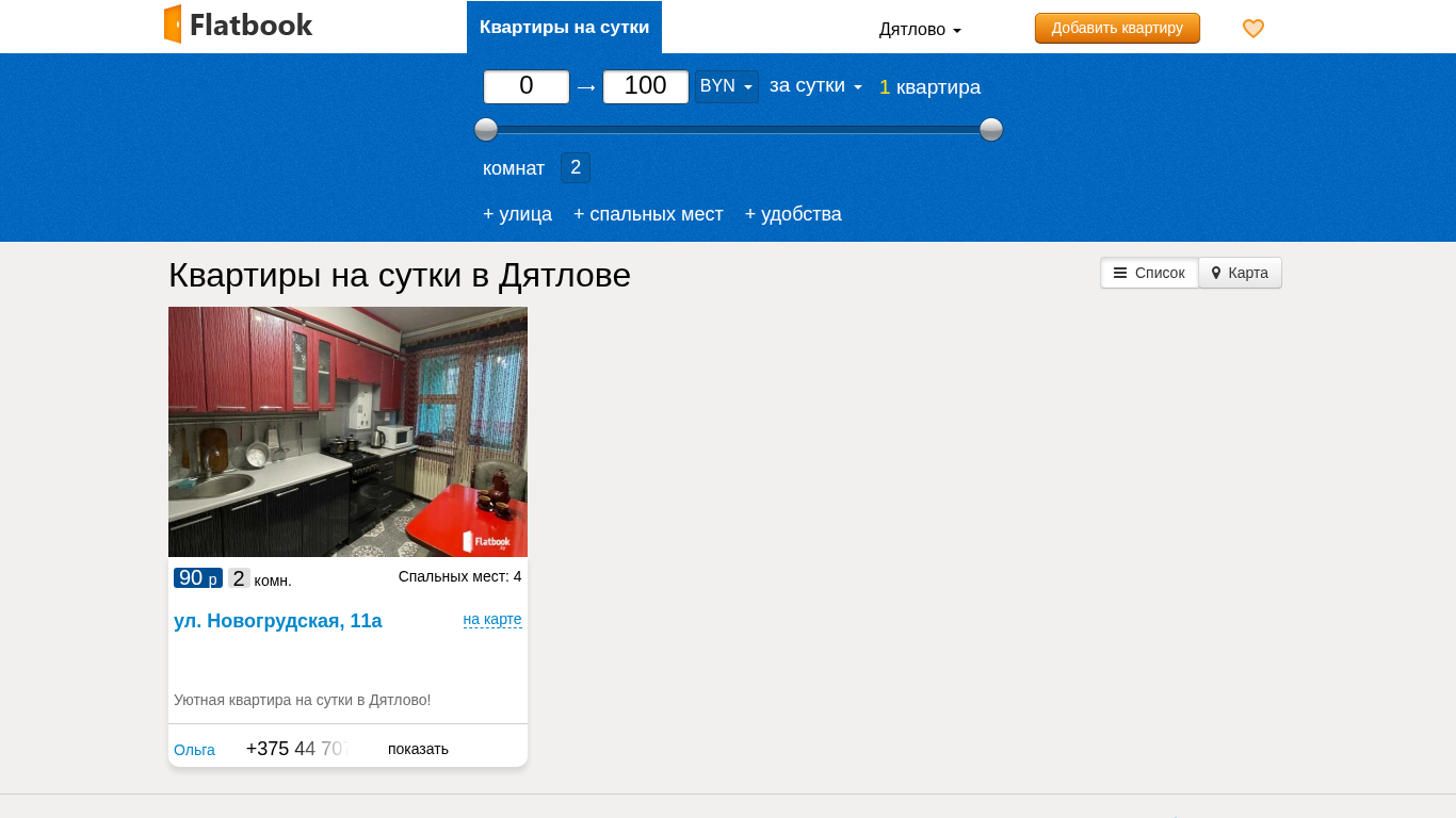 | Название / Заголовок | Квартиры на сутки в Дятлове без посредников. Снять квартиру посуточно |