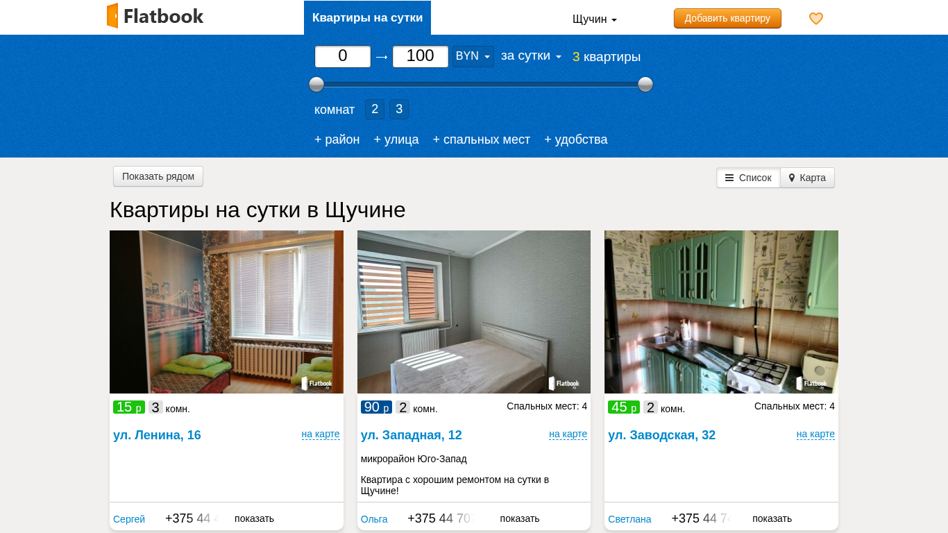 | Название / Заголовок | Квартиры на сутки в Щучине без посредников. Снять квартиру посуточно |