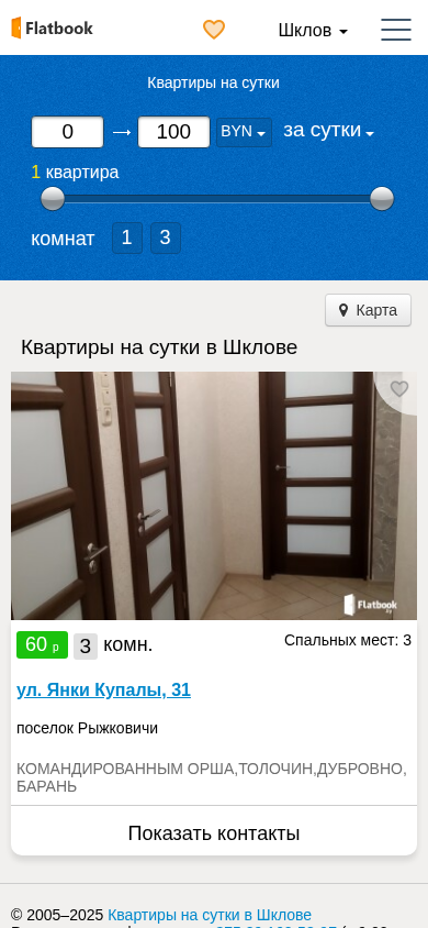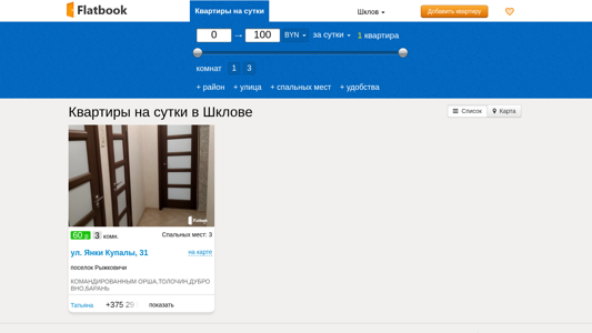 | Название / Заголовок | Квартиры на сутки в Шклове без посредников. Снять квартиру посуточно |
