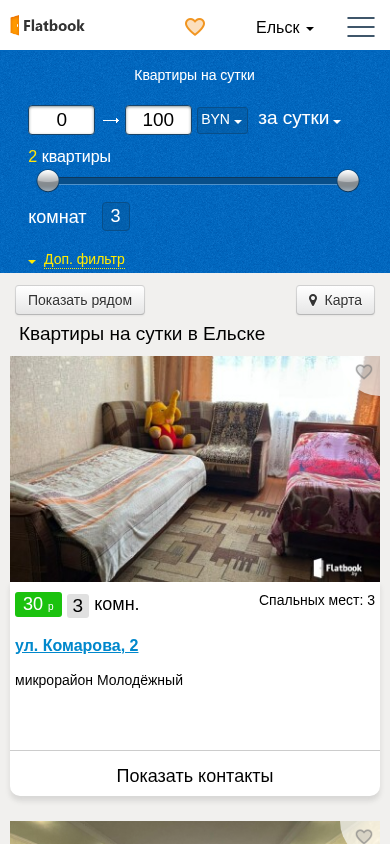 | Название / Заголовок | Квартиры на сутки в Ельске без посредников. Снять квартиру посуточно |
