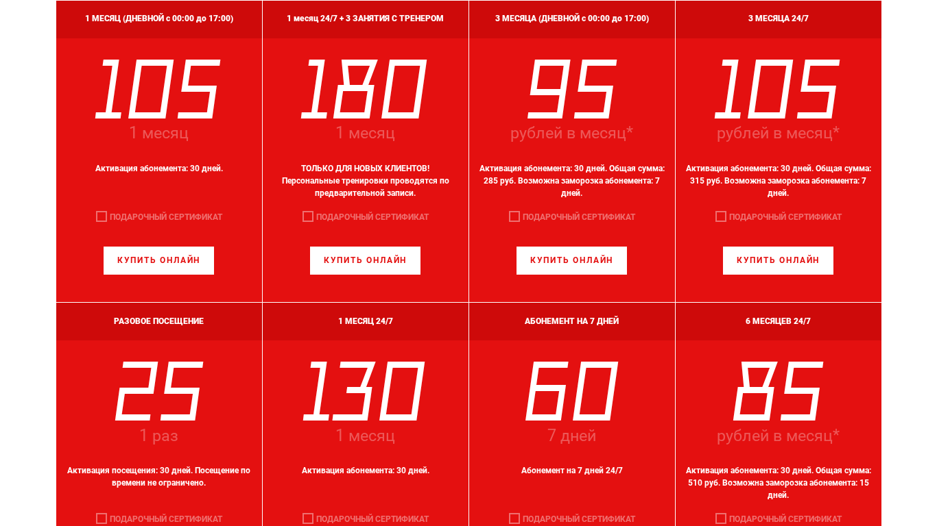 The web project "GYM express" offers various fitness subscription plans. Customers can purchase a one-month subscription for 130 rubles, which includes 24/7 access to the gym. Another option is a one-month daytime-only subscription for 105 rubles. A three-month subscription is available for 285 rubles or 315 rubles, depending on the hours of access. A one-time visit can be purchased for 25 rubles. Personal training sessions are offered by appointment. The website allows for online purchasing of subscriptions and certificates as gifts. Subscriptions can be activated within 30 days of purchase, and there is an option for a 7-day freeze. The prices listed are per month.
