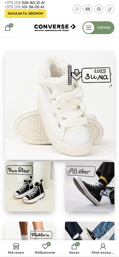 | AI-анализ | --- The portal converseshoes.by is a Converse shoes e-commerce website based in Minsk, Belarus. The website offers a wide selection of over 200 original Converse All Star models for sale, including Chuck Taylor, available at the Siluet shopping mall on Yakub Kolas Square. Users can browse the catalog, learn about guarantees, exchange and return policies, make payments, and find frequently asked questions related to Converse shoes. The website also features a phone number for customers to place orders, as well as the store's opening and delivery hours. Converse shoes have a rich history spanning 110 years and come in various styles such as autumn-winter, spring, platform, leather, limited edition, and one star models. The website also sells other clothing and accessories, including hats, jackets, and jeans. Customers can add items |