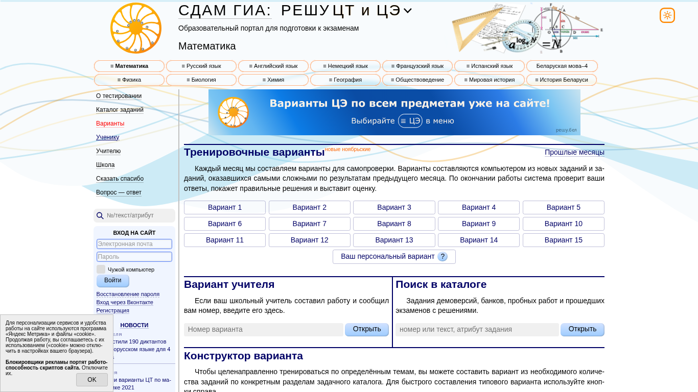 favicon ЦТ и ЦЭ−2026, Математика: задания, ответы, решения