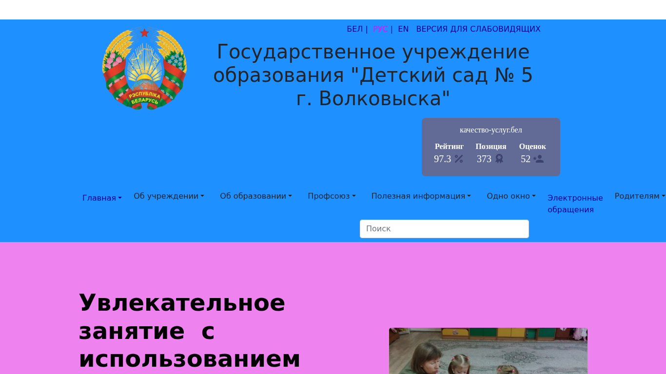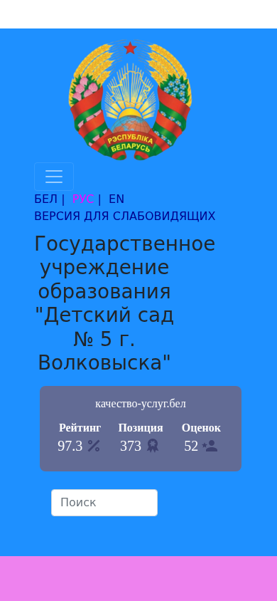 | Название / Заголовок | Главная - Государственное учреждение образования "Детский сад № 5 г. Волковыска" |