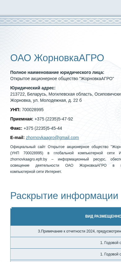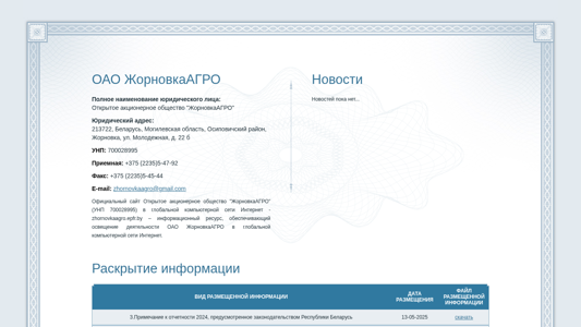 Сайт: zhornovkaagro.epfr.by — HTTP 200 (OK)