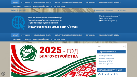 | AI-анализ | The portal hon.svroo.by is the official website of I.Prokhor Honetich School, a state educational institution located in Belarus. The site provides detailed information about the school, its history, leadership, educational programs, and various initiatives. Visitors can learn about the school's structure, the pedagogical team, vacancies, and extracurricular activities. The site also features sections on the canteen, electronic services, and a pro-union organization. The school's mission, schedule, and contact information are also accessible. The site is rich in multimedia content, including news, documents, and educational resources for students and teachers. The school's library is highlighted, offering methodological materials, new literature, and a media center. The site also covers social and ideological aspects of education, including student organizations, volunteer work, and health and safety guidelines. The portal is a comprehensive |