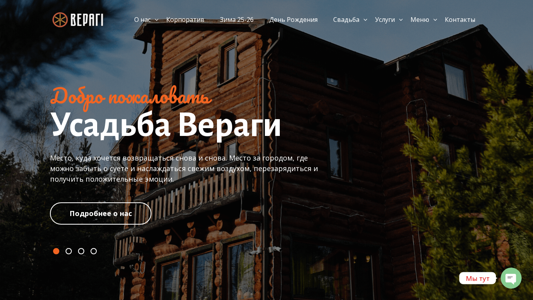 | Название / Заголовок | Усадьба Вераги - услуги питания и проживания. Свадьбы, корпоративы |
