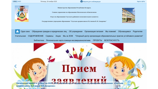 | AI-анализ | --- The web project "СШ№2 г. п. Глуска" is a website for Gluсkа Secondary School No.2, located in Belarus. The site primarily focuses on providing information related to the school, its administration, and educational documents. Keywords associated with the project include "education," "school," "director," "website," and "documents." The most frequent words on the site are "2025," "education," "read," "further," "project," "informs," "organizations," "citizens," and "size." The site contains information on the school's leadership, contact details, and various administrative procedures. It also includes a calendar of events and a section for normative documents such as application forms and administrative procedures. The website is operated by the Ministry of Education of the Republic of Belarus, with specific information |