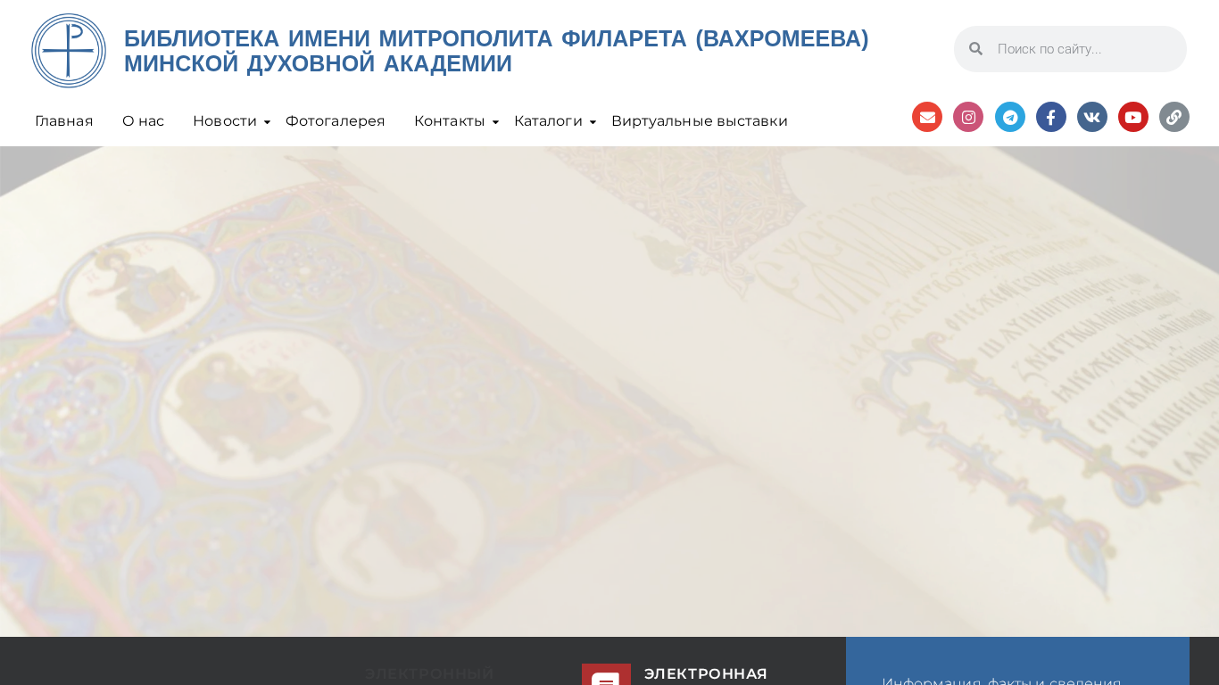| Название / Заголовок | Библиотека имени митрополита Филарета (Вахромеева) Минской духовной академии – Библиотека Минской духовной академии |