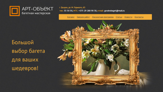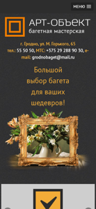 | Адрес | Арт-объект", © 2025 Все права защищены, Разработка сайта, Контакты - Багетная мастерская Гродно, г. Гродно, ул. М. Горького, 65 |
