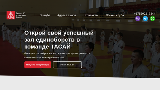 | AI-анализ | This website is a partnership network for sports clubs named TASAY. It offers a proven methodology for Karate Kокушинкай and full support throughout the process. Learn more about our franchise! Keywords associated with the website include "partnership network TASAY," "franchise TASAY," "license to open a club," "sports club," "obtaining training for trainers," and "Karate." The website's top words are "тасай" (TASAY), "клуба" (clubs), "партн" (partner), "залов" (halls), "уже" (already), "обучение" (training), and "жизнь" (life). The website's Unified Domain Names Conformance Status is 193190277. The website promotes |