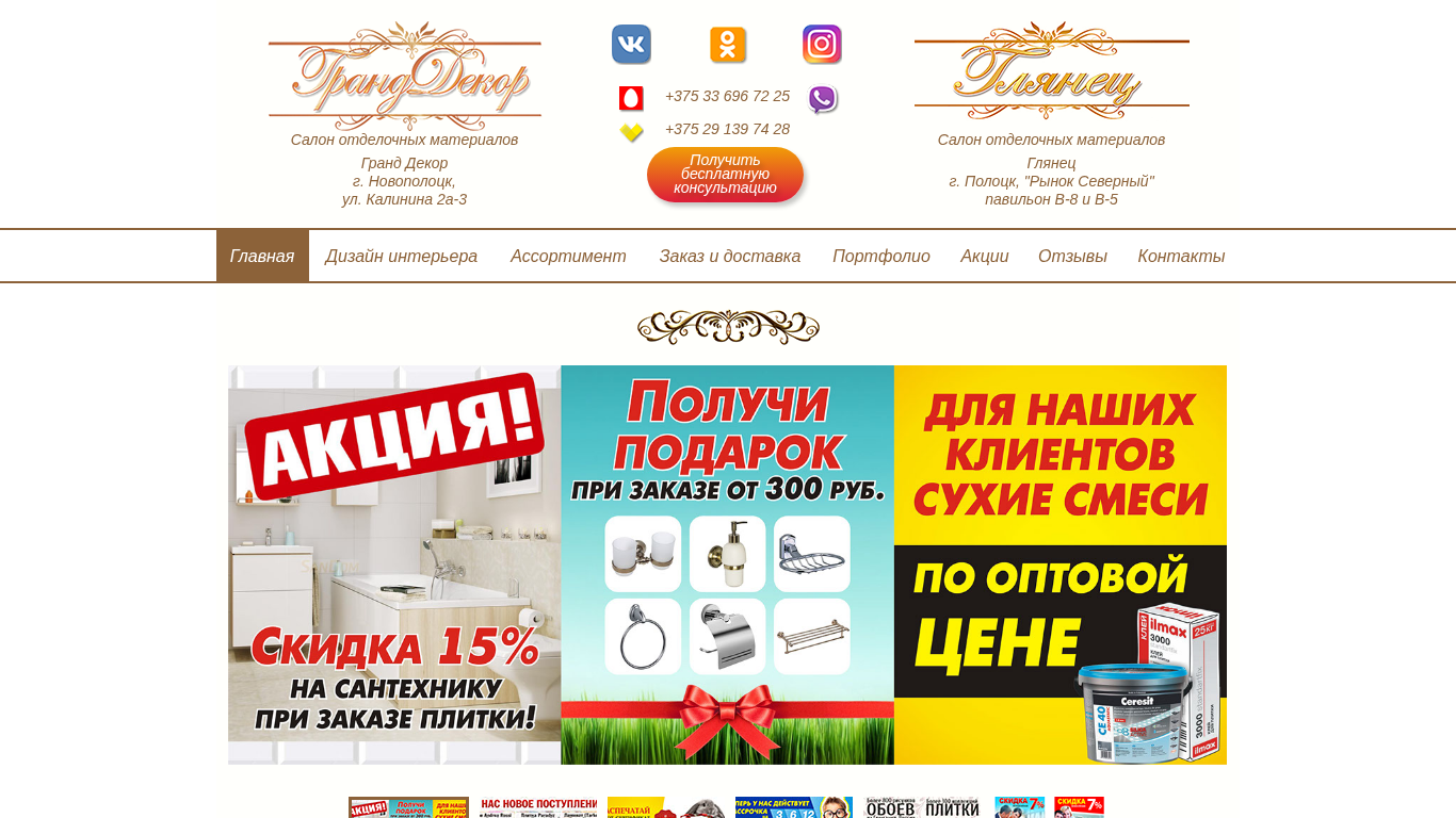 Адресдоставка, Портфолио, Акции, Отзывы, Контакты, Салон отделочных материалов, Гранд Декор, г. Новополоцк, ул. Калинина 2а-3