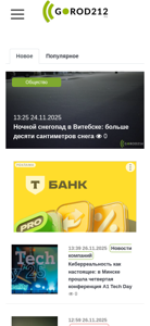 --- The website is a city portal for Vitsebsk, Belarus, providing news, advertisements, event listings, job postings and resumes, discounts and promotions, special projects, weather forecast, transportation schedules, horoscopes for all zodiac signs, emergency services, and currency exchange rates. The portal offers the latest news, including news about companies and incidents, as well as business catalogs, a special project on cyber reality, and an internet marketplace for discounts and promotions. Recent news includes a major snowfall in Vitsebsk, a cyber conference in Minsk, a fire at a paper factory in Vitsebsk resulting in a fatality, a warning from the National Bank about holiday scams, and additional trains scheduled for the holiday season. Other sections of the website include health information, sports news, and a feature on how Belarusians spend their time