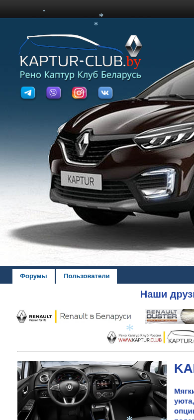| Ключевые слова | Каптур Каптюр kaptur captur Клуб Беларусь Renault Kaptur Captur club Рено renault Club Belarus РЕНО КАПТУР каптур каптюр КЛУБ БЕЛАРУСЬ RENAULT KAPTUR CAPTUR CLUB BELARUS рено клуб беларусь belarus |