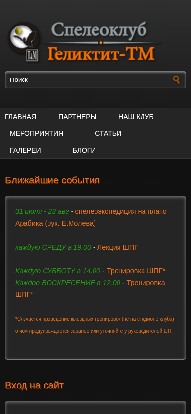 This website is the official homepage of Heliktit-TM Speleoclub, a Belarusian speleology club. The site contains extensive information about the club, its history, activities, and events. Visitors can find details on speleology training sessions, lections, expeditions, seminars, and competitions. The site also features a blog, photo and video galleries, and a library of speleology materials. Users can access the site with their username and password. New content is regularly added, including articles on speleology, gear, and travel experiences. The site also provides contact information for the club, including its location in Minsk, Belarus, and the email address geliktit@bk.ru. The site was last updated on August 21, 2019, by a user named "Чудачка".