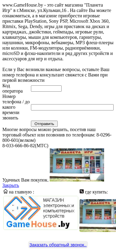 | Адрес | карманные консоли, аксессуары и игры к ним., www.GameHouse.by - это сайт магазина "Планета Игр" в г. Минске, ул. Кульман,16 |