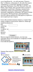 | AI-анализ | The website is an online electronics and computer devices store specializing in gaming consoles, handheld consoles, accessories, and games for them. The store, named "GameHouse," is located in Minsk at ul.Kulman, 16. The website offers a variety of gaming consoles such as PlayStation, Sony PSP, Microsoft Xbox 360, Ritmix, Sega, and Dendy. Additionally, customers can purchase games for these consoles on discs and cartridges, as well as accessories such as joysticks, gamepads, gaming wheels, keyboards, mice, headsets, webcams, MP3 flash players, or speakers, FM modulators, and radio receivers, and various other devices and accessories for gaming and leisure. The store's physical location operates from Monday to Friday, 10:30am to |