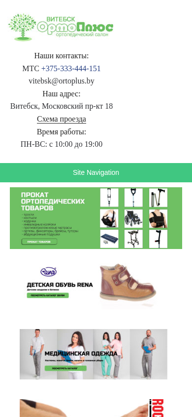 | AI-анализ | language: en The website is an online catalog for orthopedic products offered by OrtoPlus in Vitebsk, Belarus. The store sells a variety of orthopedic items for children and adults, sourced from leading manufacturers. Visitors can browse through sections dedicated to bandages, orthoses and fixators, women's items, compression garments, children's footwear, shoe inserts, massage mats for kids, medical clothing, rehabilitation, kinesio tape, health technology, and sun protective eyewear. Additionally, some orthopedic items can be rented. To rent or purchase an item, customers need to visit the store located at Moscowsky prospekt 18 in Vitebsk or call +375-333-444-151. The store's hours are Monday through Saturday, from 10: |