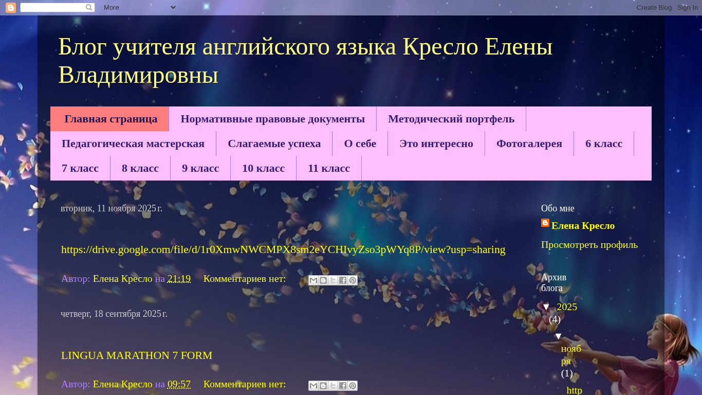 | Название / Заголовок | Блог учителя английского языка Кресло Елены Владимировны |