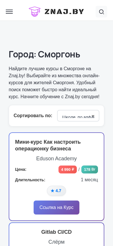 | Название / Заголовок | Онлайн Курсы Сморгонь - Znaj.by |