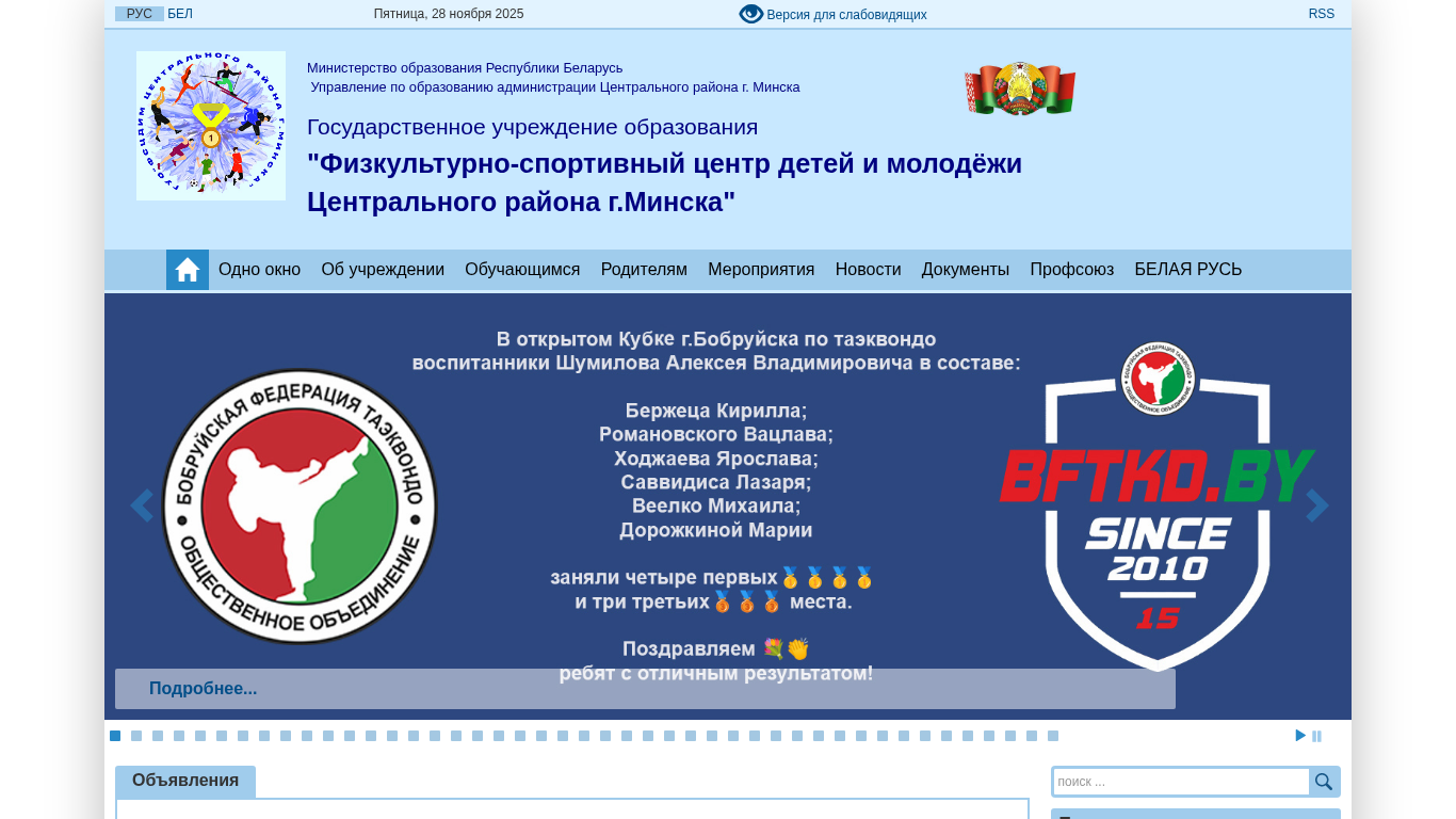 | Название / Заголовок | Физкультурно - спортивный центр детей и молодёжи Центрального района г.Минска |