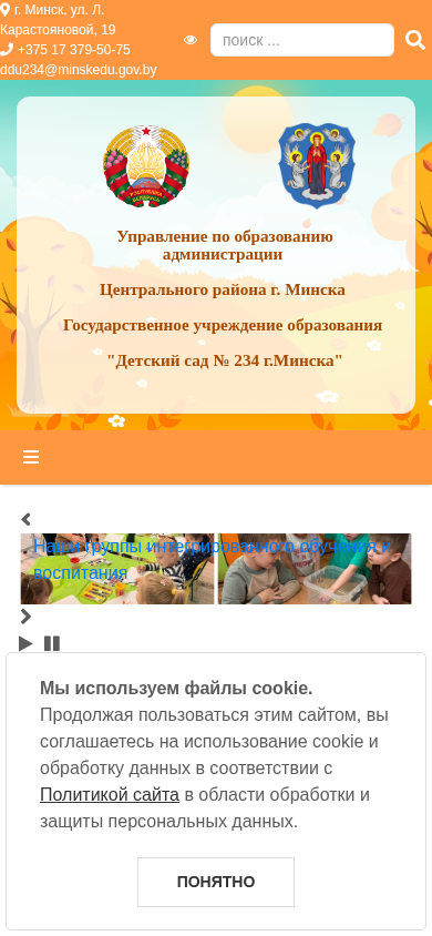 | Адрес | защиты персональных данных., Понятно, Контакты, режим работы © Детский сад №234 г. Минска, г. Минск, ул. Л. Карастояновой, 19 |