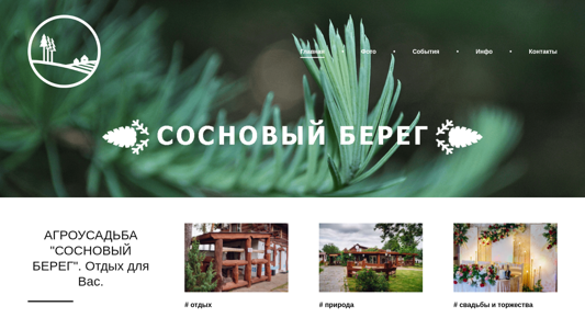 | AI-анализ | The website "Агроусадьба 'Сосновый Берег' - свадьба в Пинске" is about an agro-estate named 'Сосновый Берег' (Sosnovy Bereg) located in Pinsk, Belarus. The estate offers rental services for weddings, jubilees, and corporate events. It features guest houses, a Russian banya on the lake, and various facilities. The website also includes sections for events, information, prices, customer reviews, and contacts. The estate was founded in 2015 and accommodates various types of events, including banquets, sports activities, and fishing. The estate provides comfortable lodging, attentive personnel, and excellent cuisine. It also offers a large banquet hall for up to 100 guests, as well as a smaller hall |