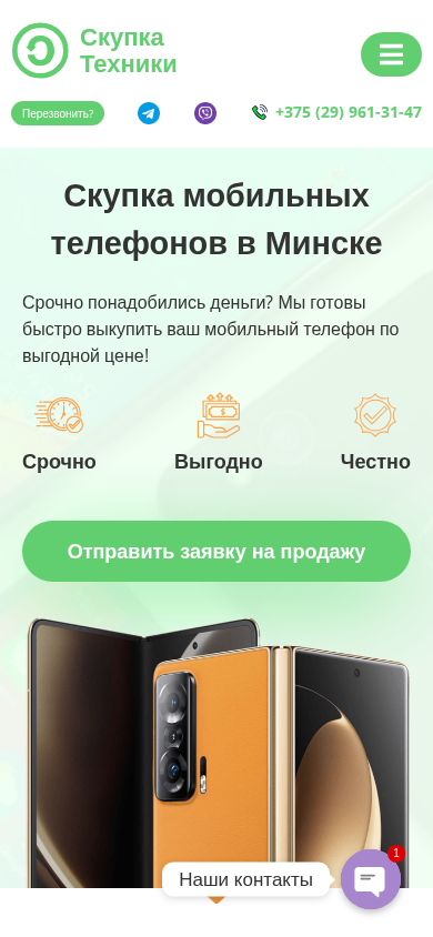 | SEO-описание | Скупка мобильных телефонов в Минске. Продать новый телефон дорого и быстро. Сдать мобильный телефон можно ежедневно с выездом курьера. |