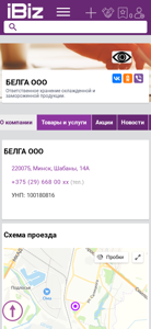 | AI-анализ | This online resource is a business website for Belga OOO, a company located in Minsk, Belarus at the address 220075, Shaaban Avenue, 14A. The website provides information about the company, its offerings of responsible storage for chilled and frozen products, and contact details including phone number +375 (29) 668 00 xx. The website also includes a map for directions, business hours from Monday to Saturday, and a section for job vacancies. Belga OOO operates in the category of cold storage equipment and technology. The website is part of Ibiz Media OOO, a Belarusian catalog of businesses and organizations. |