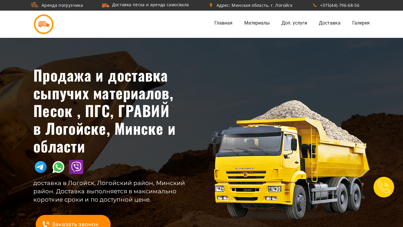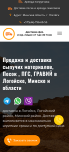 | AI-анализ | --- This online resource is dedicated to the sale and delivery of various granular materials in Minsk and the surrounding area. The offered services include the delivery of sand and the rental of construction equipment such as a crane. The company's address is in Lagoisk, Minsk region, with the phone number +375(44)-796-68-56. The website lists several types of materials available for delivery, including sand, crushed stone, and gravel, in quantities from 1 to 30 tons. Prices range from 18 to 20 Belarusian rubles per ton, and customers can place orders for delivery online. The website also offers additional services such as the rental of self-loading trucks and excavation work. The company boasts direct deliveries from quarries, prompt deliveries, and compliance with the relevant standards. |