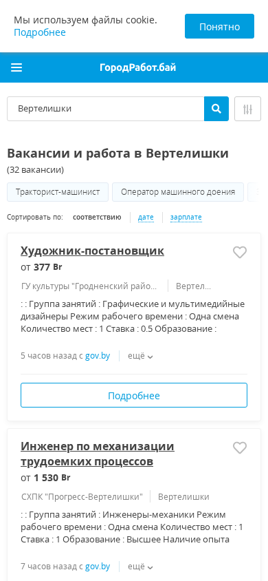 | Название / Заголовок | Вакансии и работа в Вертелишки | Поиск работы с ГородРабот.бай |